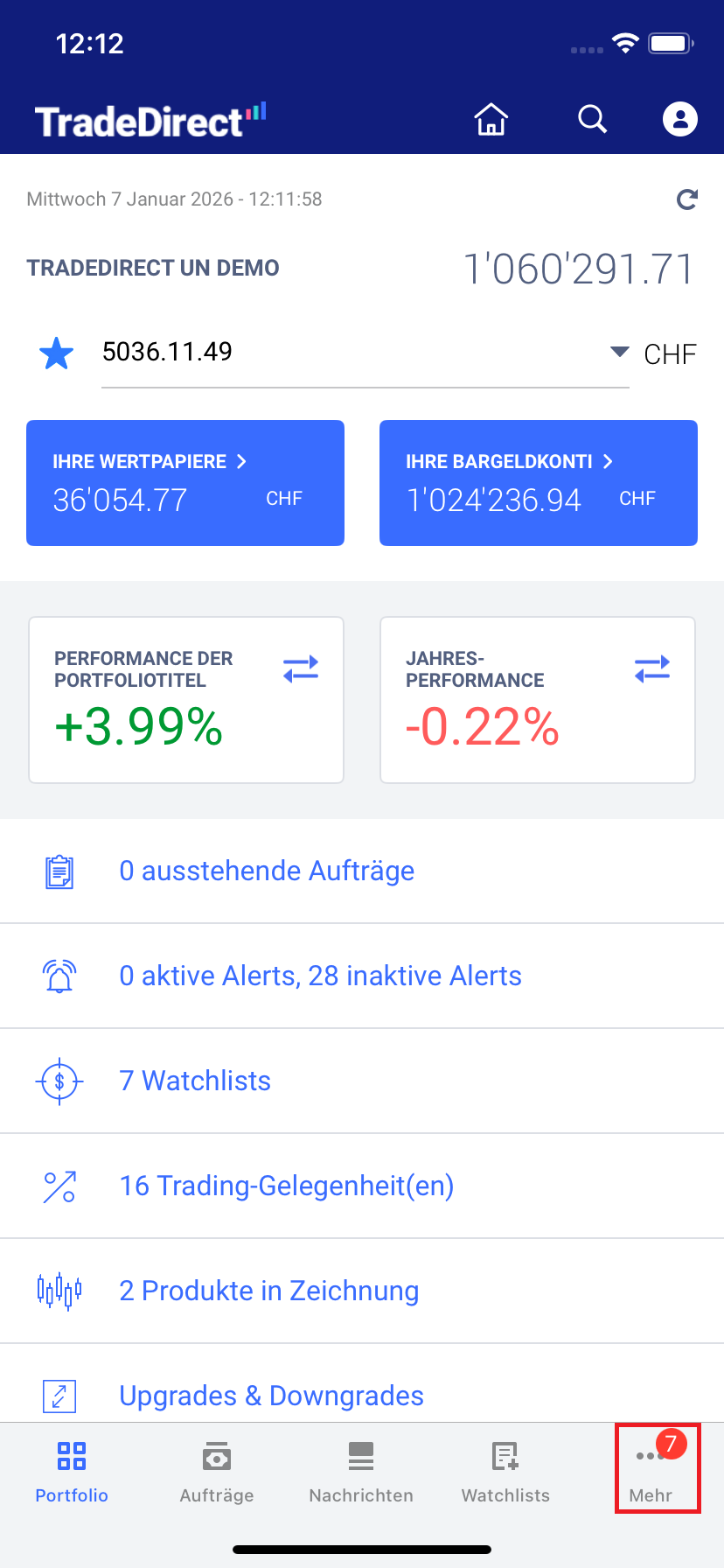 Tippen Sie auf die betreffende Depotnummer, um das Bestellformular und die anfallendeGebühr anzuzeigen.