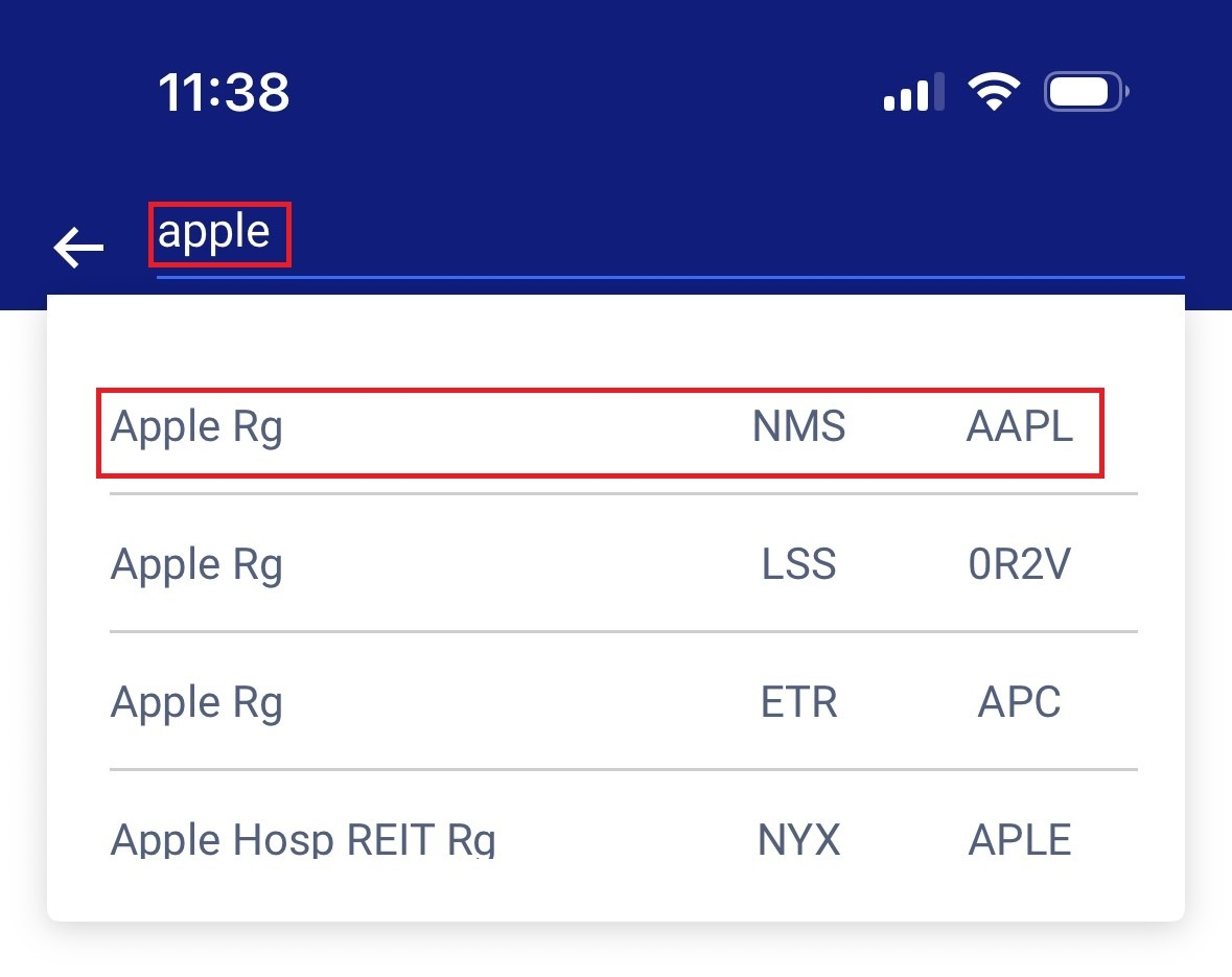 • Suchen Sie den gewünschten Titel mithilfe der Suchleiste und wählen Sie ihn aus. Sie können entweder mit dem Namen des Titels, seiner Valorennummer oder seinem Symbol suchen.