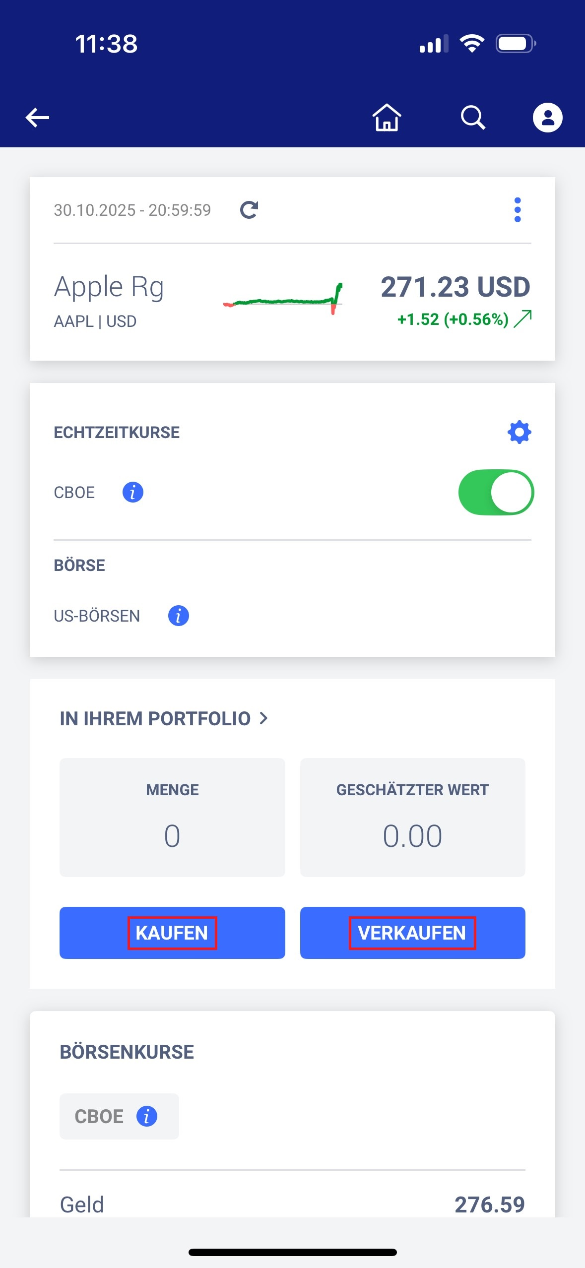 • Tippen Sie auf «Kaufen» oder «Verkaufen».