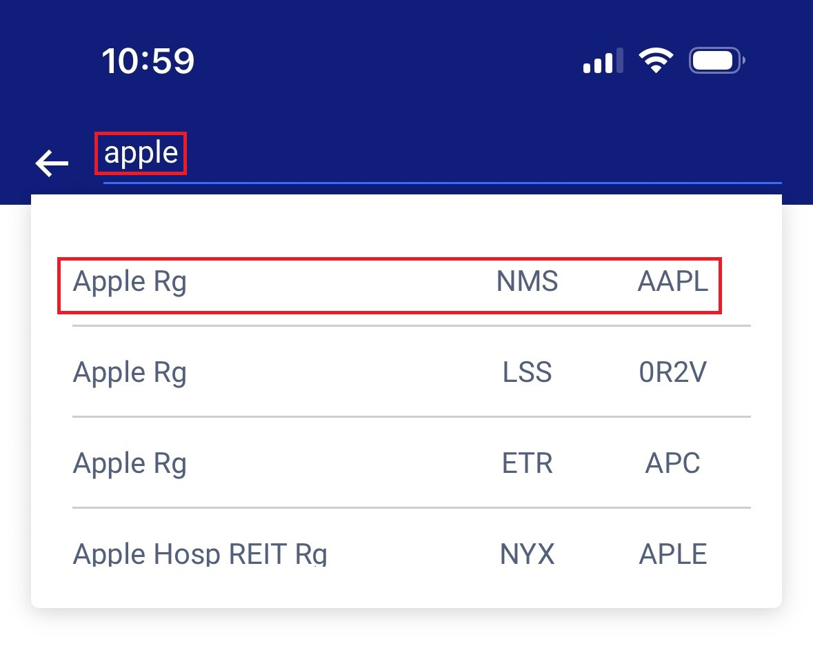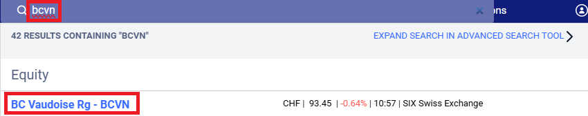 • Find the security using the search bar. You can search for securities using their name, ISIN, or ticker symbol.