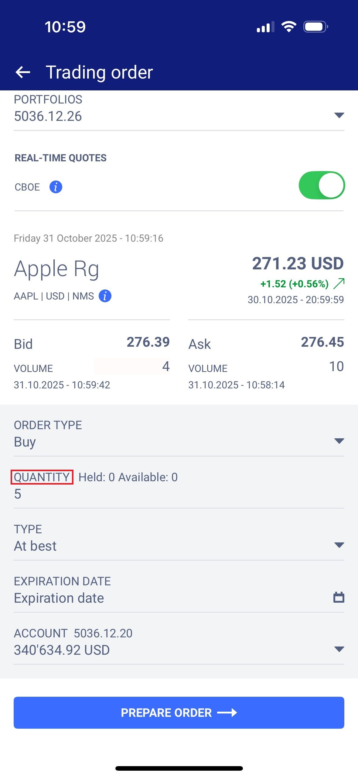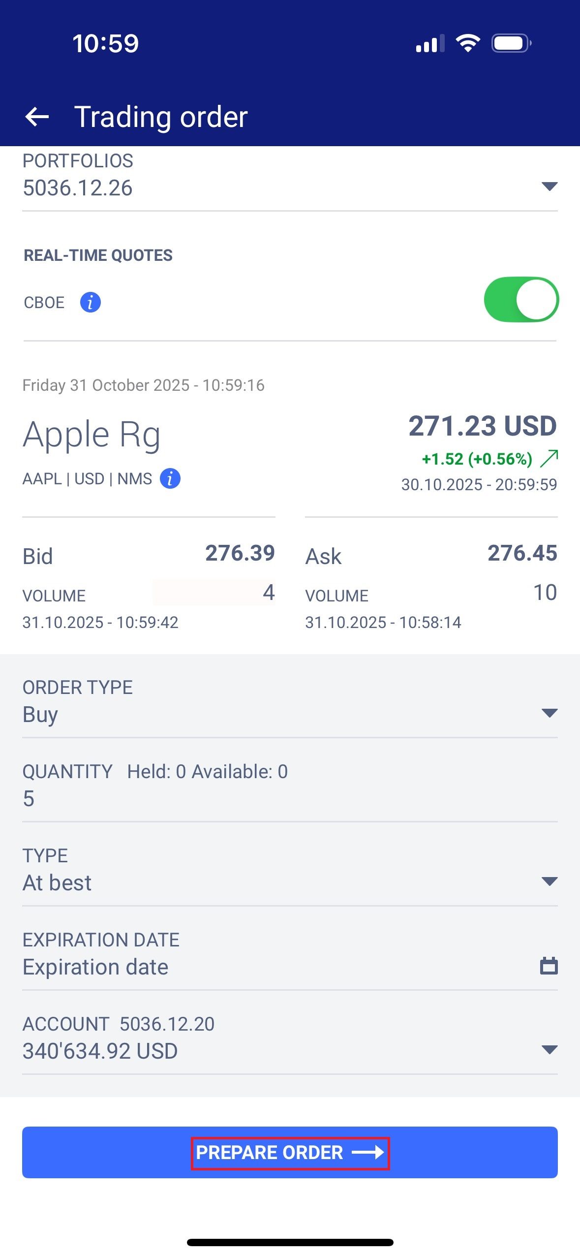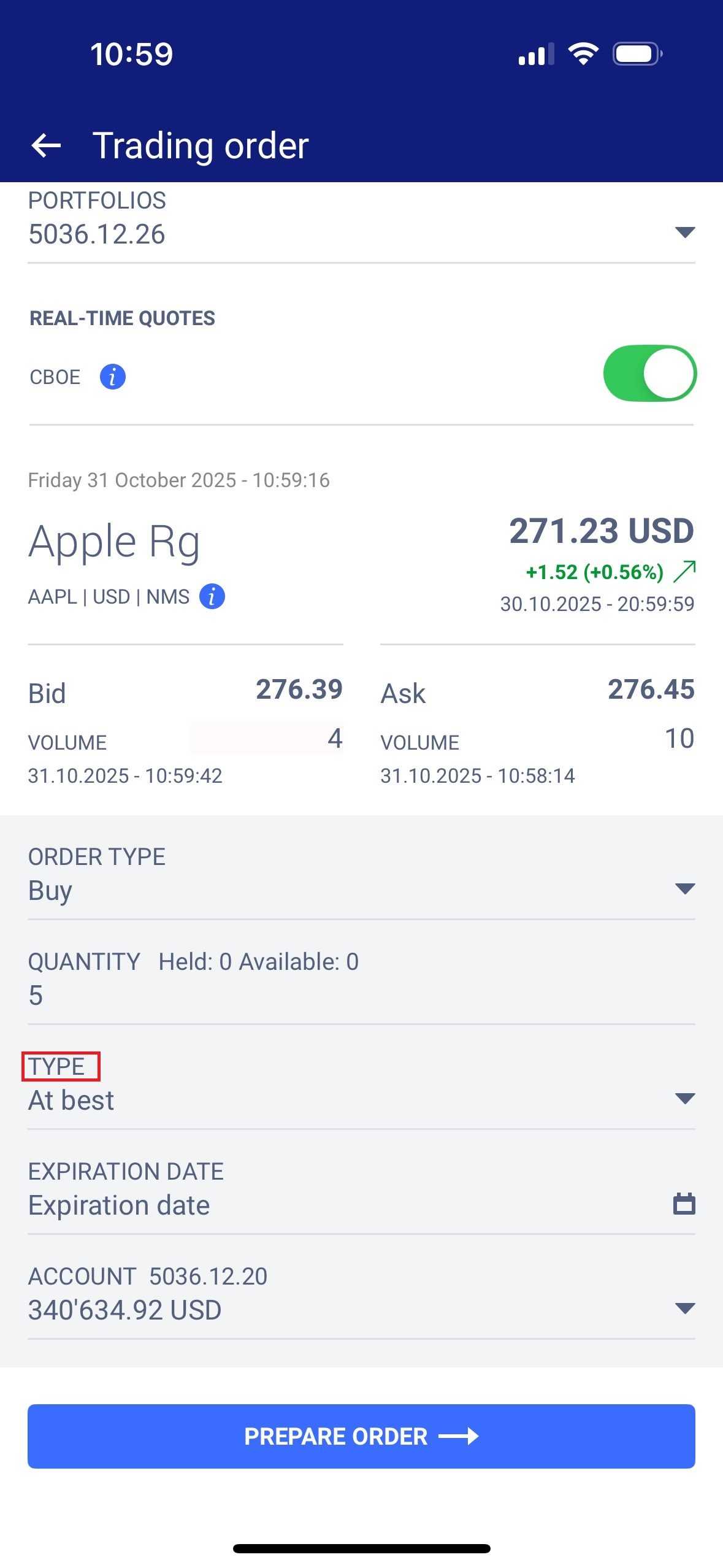 • Tap on “Prepare order.”