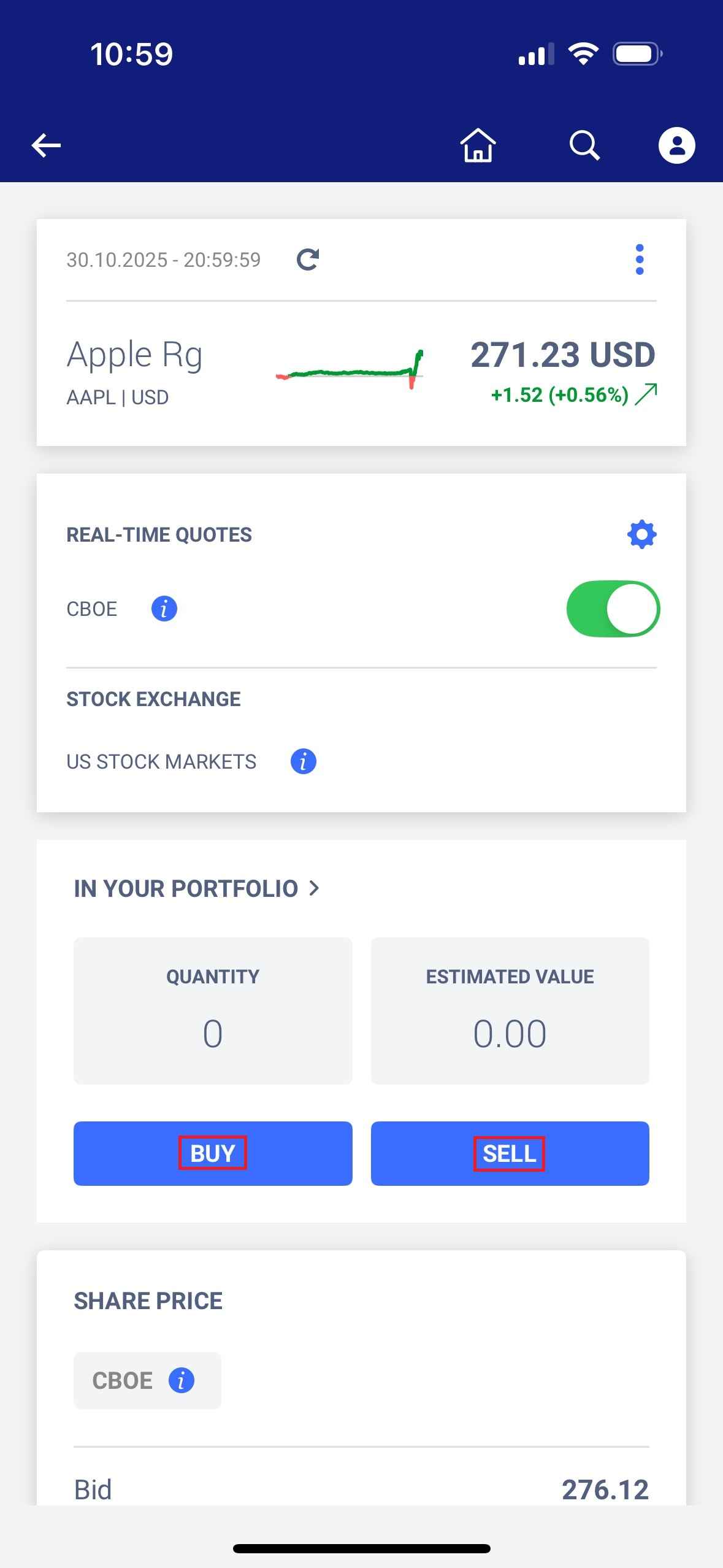 • Tap on “Buy” or “Sell.”